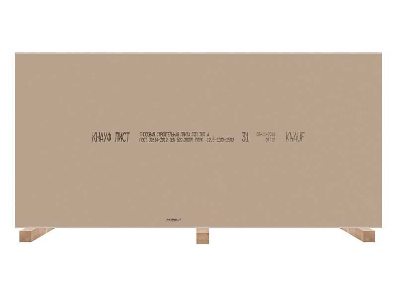 Гипсокартон Knauf 16x1200x2500 стандартный